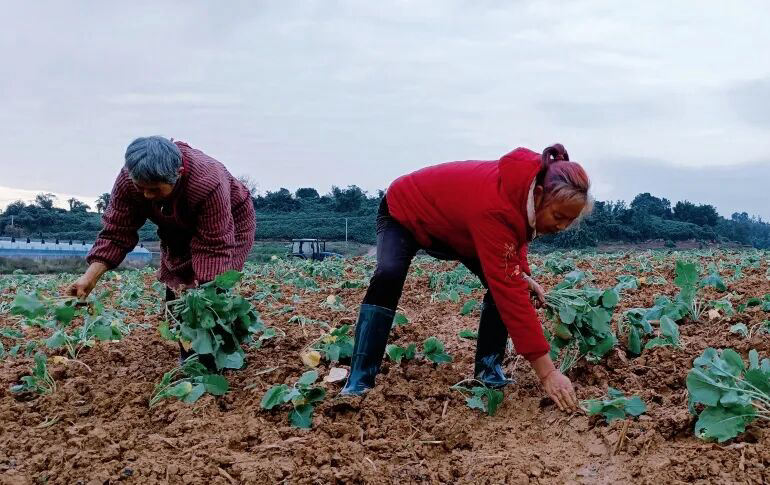 与观音桥镇无人机飞播的繁忙场景一样,丰禾镇高礅河蔬菜现代农业园区里也是一派热火朝天。村民们小心翼翼地将嫩绿的彩色油菜苗移栽到田里,菜苗在阳光下舒展腰肢,与村民弯腰劳作的身影构成一幅灵动的田园画卷。