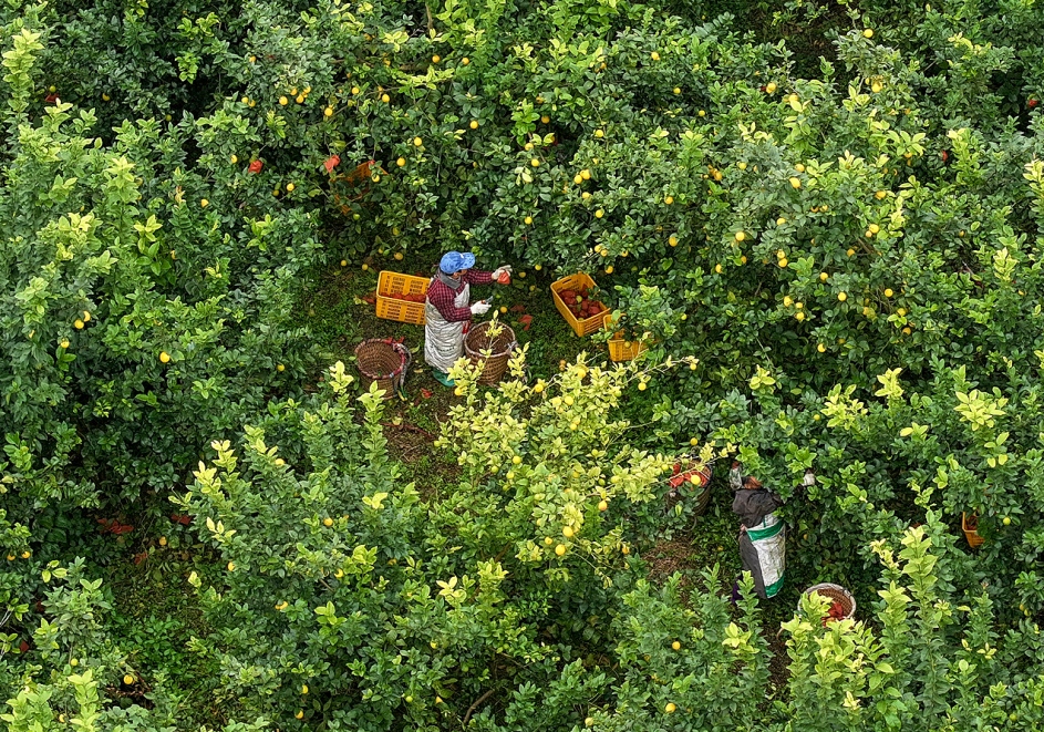 果农在收获的季节忙碌,采收新鲜柠檬,通过线上和线下销售的方式供应市场。近年来,华蓥高兴镇花庙嘴村结合地理气候等条件和市场需求,调整农产品种植种类。
