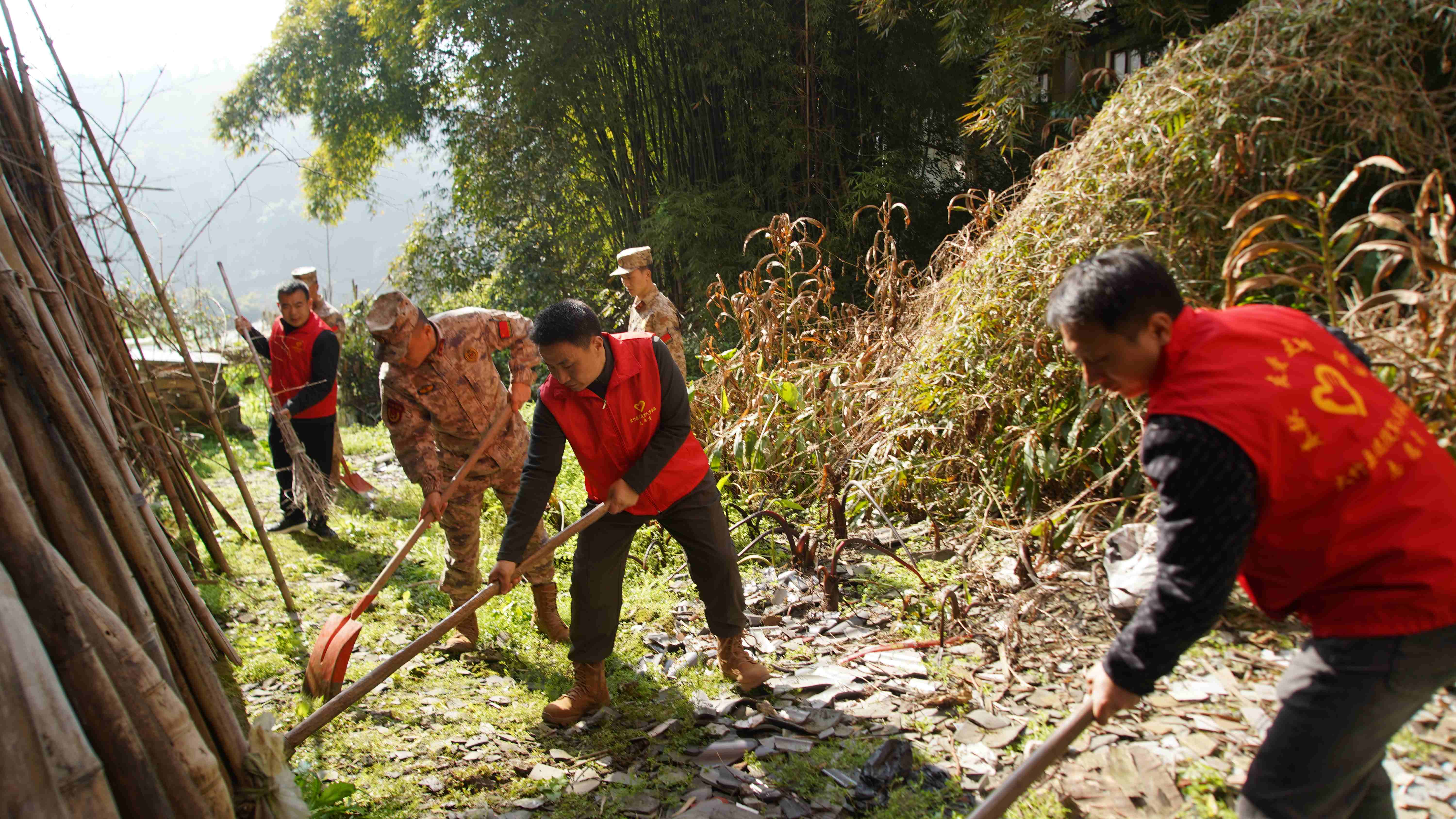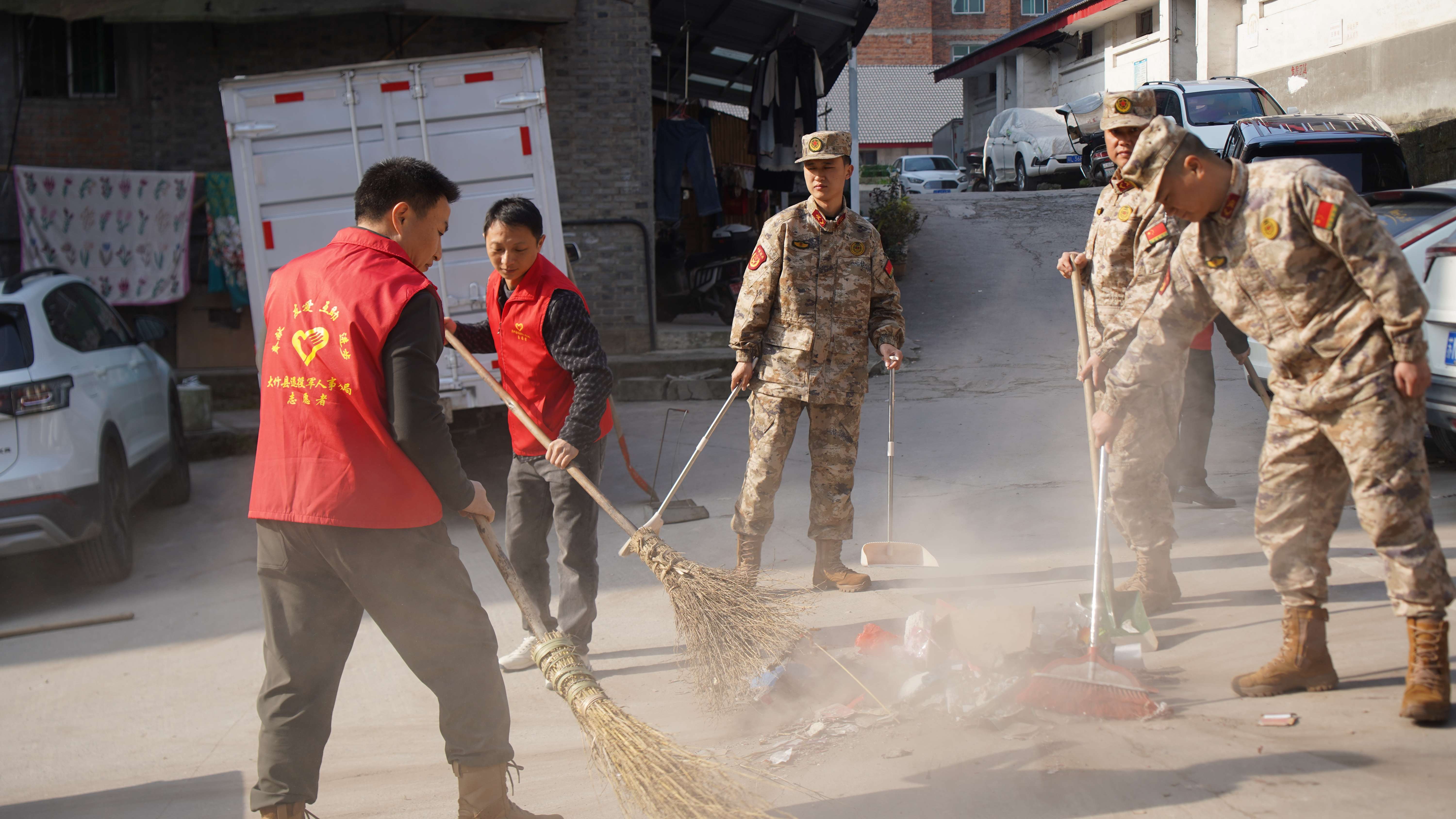 3月4日上午,在第61个“学雷锋纪念日”到来之际,大竹县退役军人事务局退役军人赤焰先锋队联合县人武部,走进清水镇、庙坝镇开展“学雷锋净庭院、美乡村”志愿服务活动,以实际行动尊崇功臣、关爱老兵,示范带动全县退役军人家庭积极投身“院落更整洁·乡村更美丽”专项行动,让雷锋精神在乡村一线落地生根。