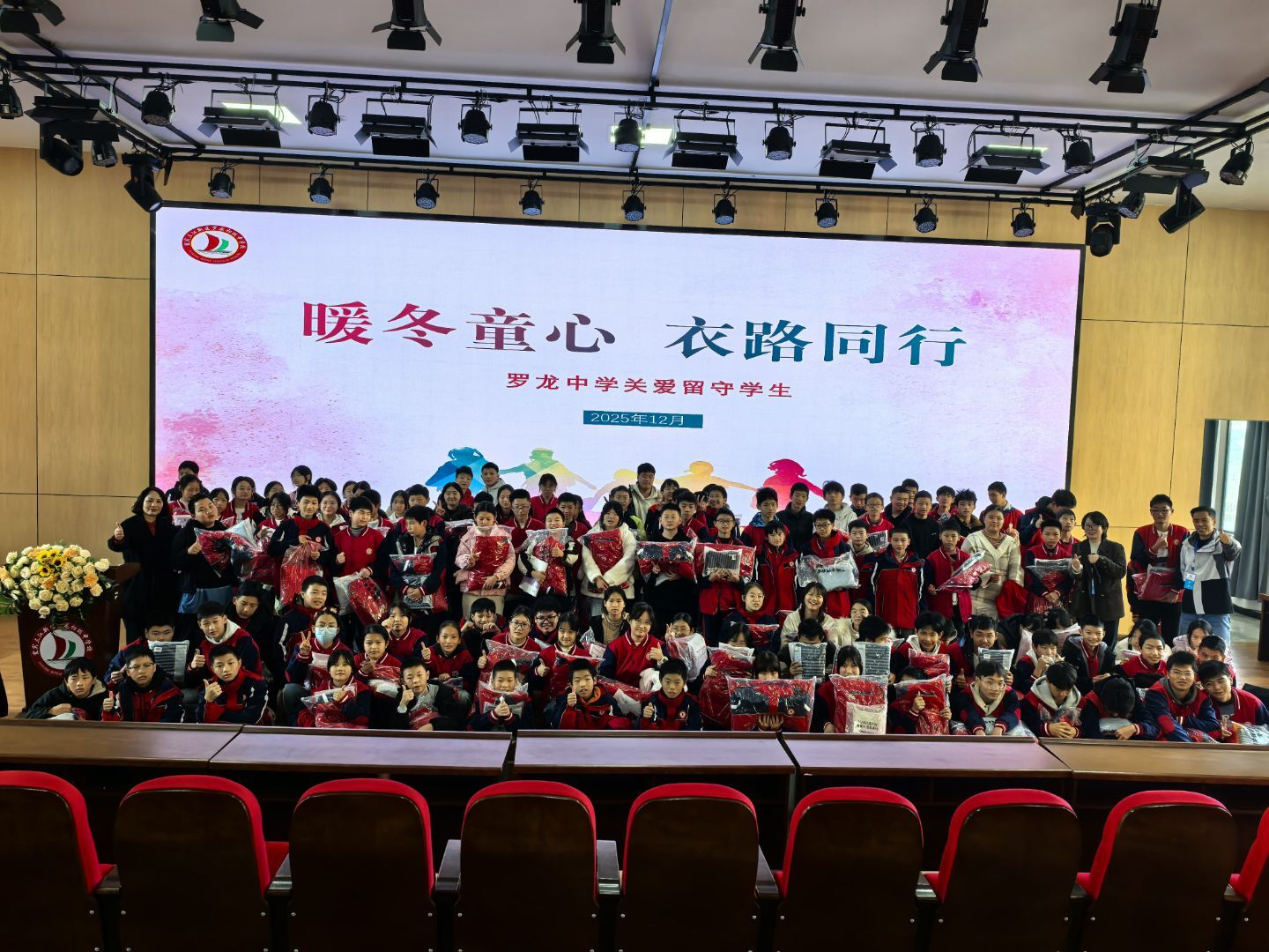 寒冬将至,暖意先行。为切实解决留守儿童、困境儿童的冬季保暖需求,传递学校大家庭的关怀,营造和谐友爱的校园氛围,宜宾三江新区罗龙初级中学校于12月5日开展了“暖冬童心,衣路同行”关爱留守儿童送冬衣主题活动。活动不仅为孩子们送去了冬日的温暖,更通过爱心传递与情感互动,播下感恩与希望的种子,让每一位留守儿童都感受到被牵挂、被珍视的幸福感。