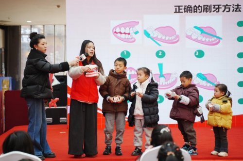 活动现场精心设置了口腔护理小课堂。专业讲师借助趣味动画短片、仿真牙齿模型等直观工具。在互动演示环节,讲师邀请小朋友们上台实操,手把手教学“123刷牙法”,通过“刷内侧、刷外侧、刷咬合面”的分步指导,让孩子们快速掌握正确刷牙技巧,现场氛围热烈而有序。