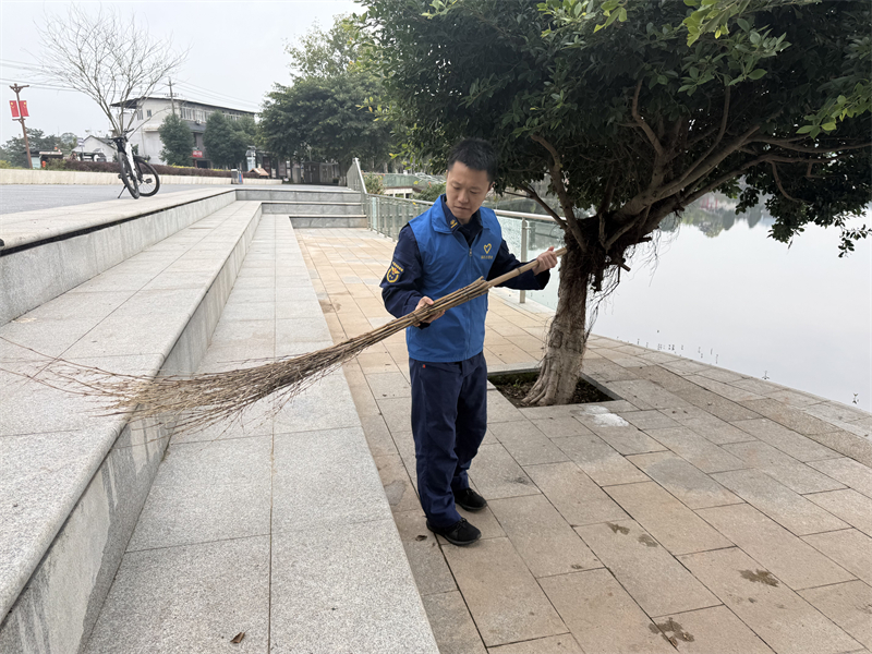 活动中,志愿队伍自带扫帚、垃圾袋、消毒喷壶等工具,兵分两组深入站区周边背街小巷及共建社区。一组沿主路清扫落叶、捡拾烟头、塑料瓶等零散垃圾,重点清理绿化带隐蔽处的废弃物;另一组负责公共区域设施清洁,踮脚擦拭垃圾桶表面污渍,俯身刮除健身器材上的积灰,最后用稀释消毒液全面消杀。