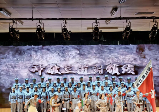 演出在激昂的大秧歌《保卫黄河》中拉开帷幕,随后《红色娘子军》《地道战》等经典节目依次登场,通过舞蹈、情景歌舞、大型合唱伴舞等多种艺术形式,生动再现了革命年代的峥嵘岁月。特别是《七律·长征》《告别》《遵义会议放光辉》《四渡赤水出奇兵》等长征组歌系列节目,以恢弘的场面和深情的演绎,展现了红军长征的艰苦卓绝与伟大精神,引发全场共鸣。