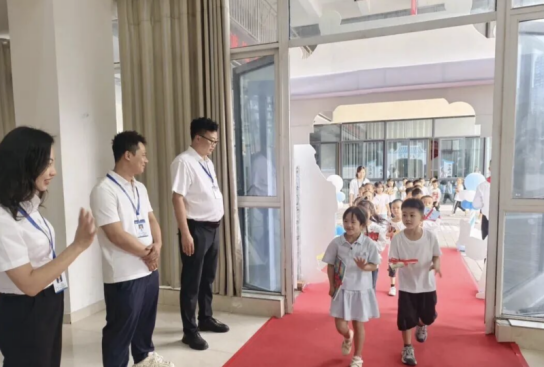 活动伊始,孩子们在老师的引导下,精神抖擞地依次穿过象征成长与希望的大门,正式开启了求学之路,体现了“党引领成长之路”的深刻内涵。