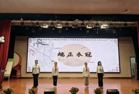 衣冠正心,先正衣冠后明事理。“童蒙之学,始于衣冠”。在老师和大队干部的示范下,孩子们自正衣冠,互正衣冠,寓意求学的第一步,首先要做一个整洁端庄、明事理的人。