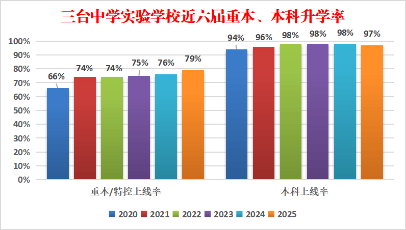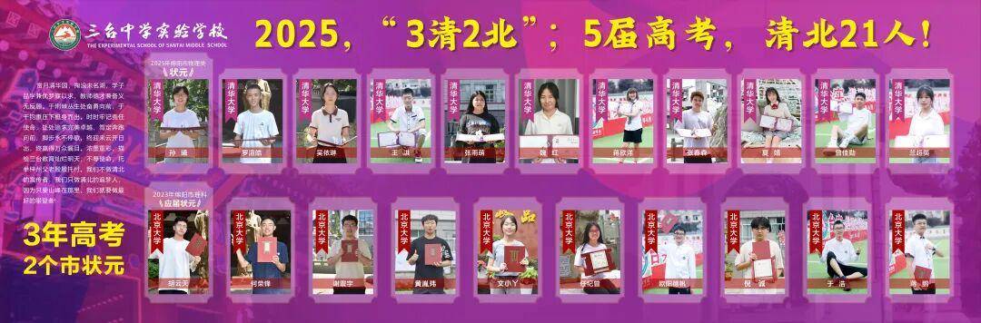 作为无政策加持的县中,台实凭借特色课程体系的扎实推进,在高考中屡创佳绩:5届高考累计培养21名裸分清华、北大学子,2023年胡云天同学以裸分707分勇夺绵阳市应届理科状元;2025年孙曦同学以裸分695分再夺绵阳市物理类状元,孙曦、罗渲皓、何荣锋、谢震宇、吴依琳五位同学凭裸分考入清北,学校600分比例达30%、特控率达80%、本科率超97%,以亮眼成果印证特色课程建设的育人实效,彰显学校高质量发展的强劲动力。