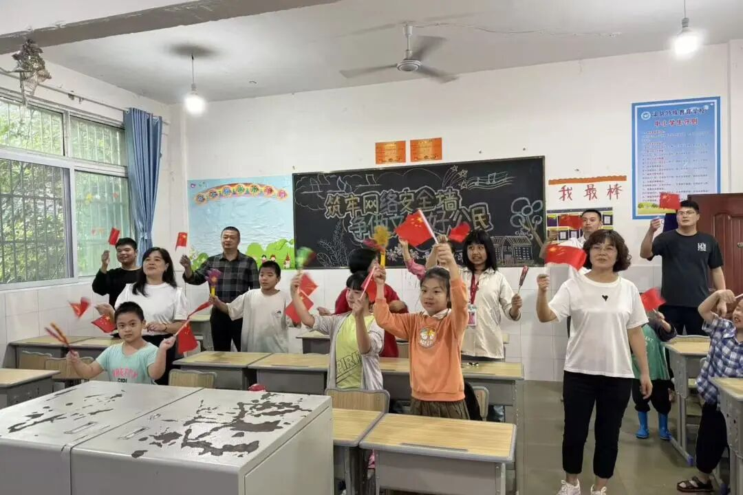紧接着,师生在各班教室进行升旗仪式,多媒体中冉冉升起的五星红旗与学生的爱国主义情怀交相辉映,勾勒出一幅波澜壮阔的绝美画卷。各班师生目视国旗,齐唱国歌,眼神中皆充满着对国家无限的尊崇和敬意。