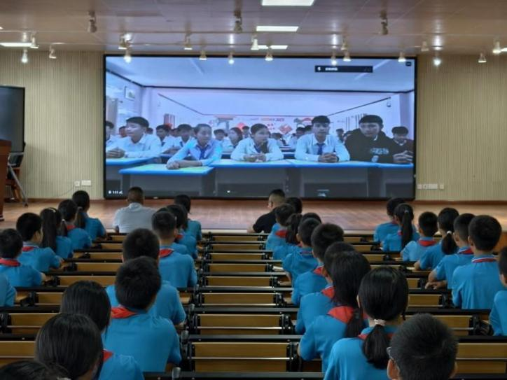 在文化分享阶段。双方师生共同观看了桂溪初中精心制作的中秋文化主题视频。视频中,嫦娥奔月等经典中秋神话故事以生动画面呈现,带领师生追溯传统节日的文化根源;同时,视频还详细讲解了月饼的历史演变脉络与多样种类特色,让老挝师生直观了解这一中秋标志性美食的独特魅力,沉浸式体验中华传统文化的深厚底蕴。