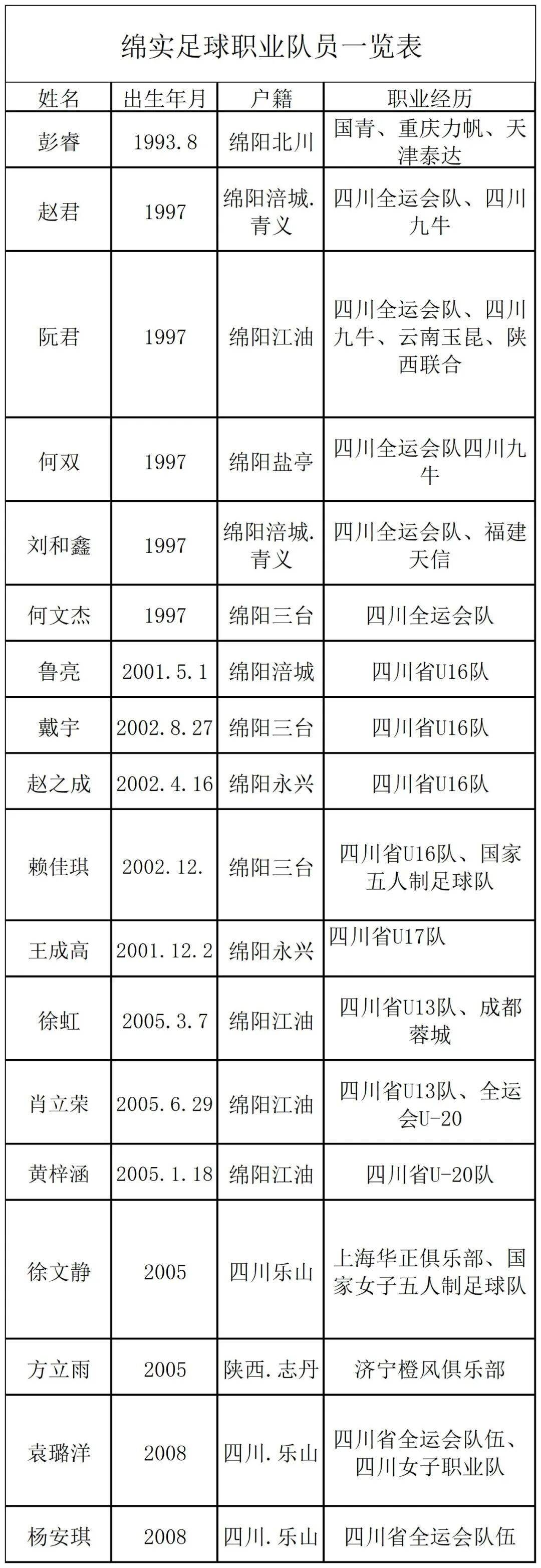 截至目前,从绵实校园走向职业赛场的球员已达18人,涵盖中超、中甲、女五甲、全运会: