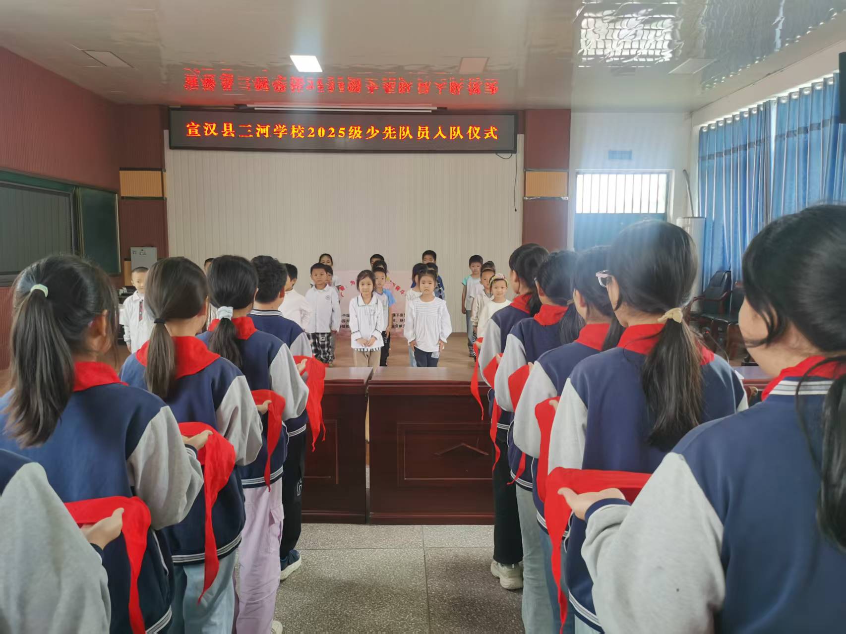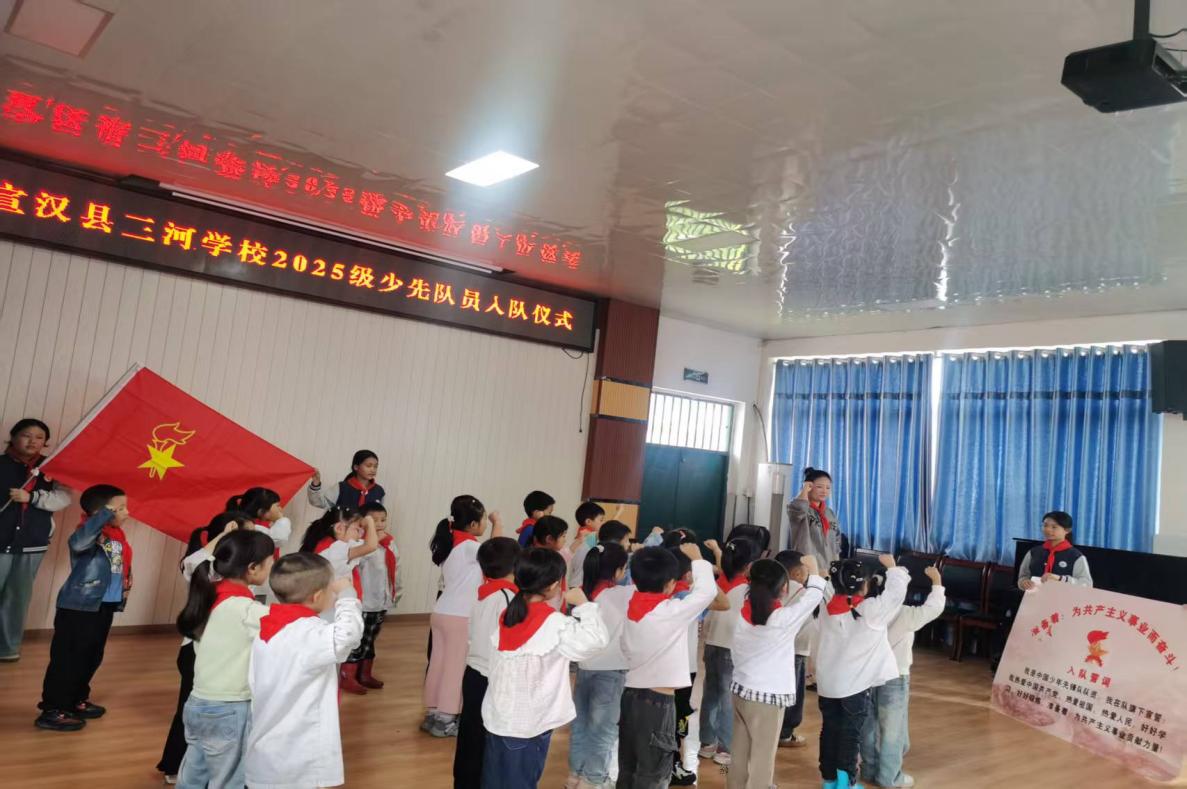 10.13是中国少年先锋队建队纪念日,为传承红色基因,增强少先队员的光荣感与使命感,宣汉县三河学校今日隆重举行少先队新队员入队仪式,师生共同见证这一庄严时刻。