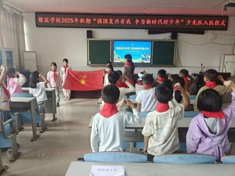 10月13日,裴石镇留宾学校在会议室举行“强国复兴有我,争当新时代好少年”新队员入队仪式。