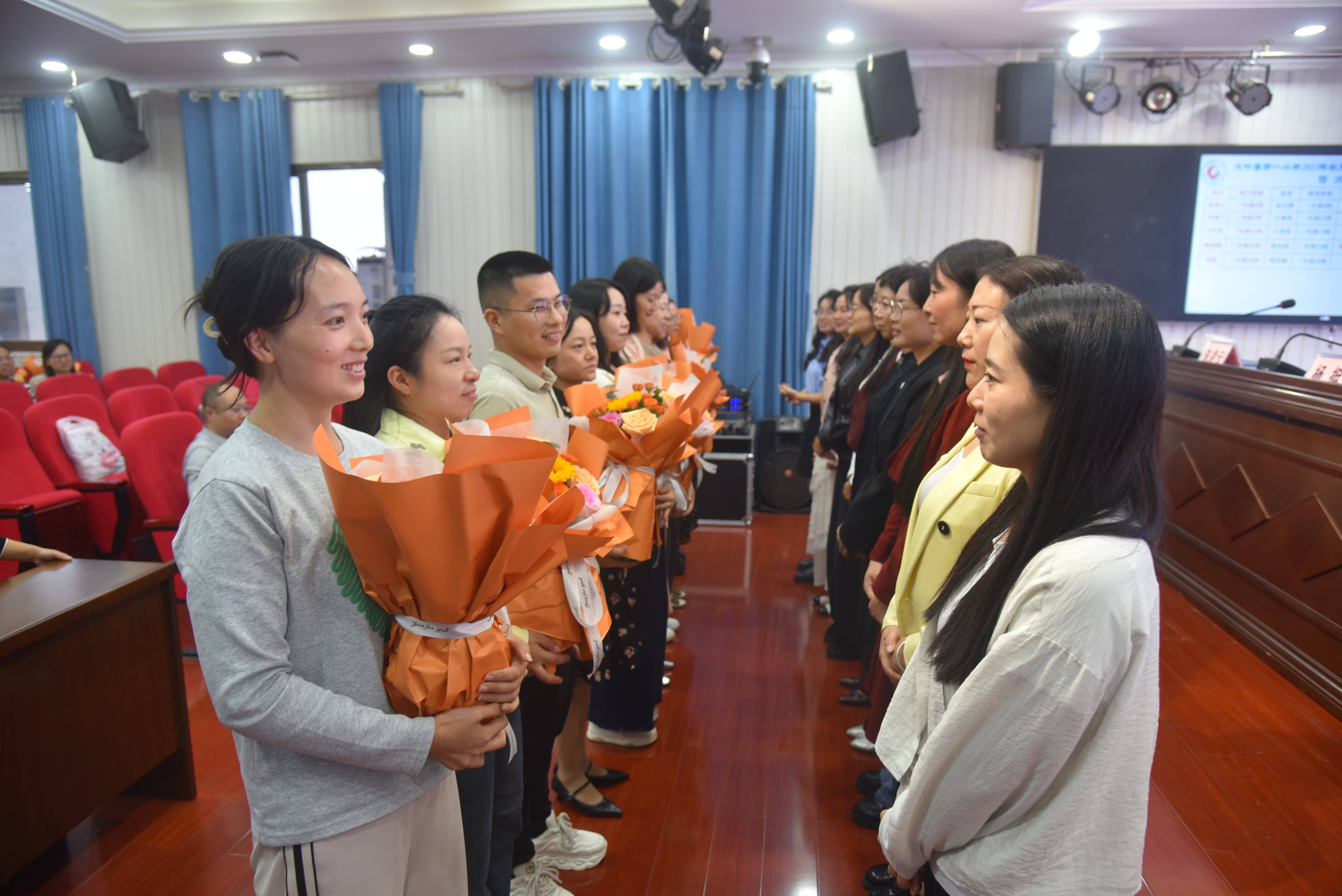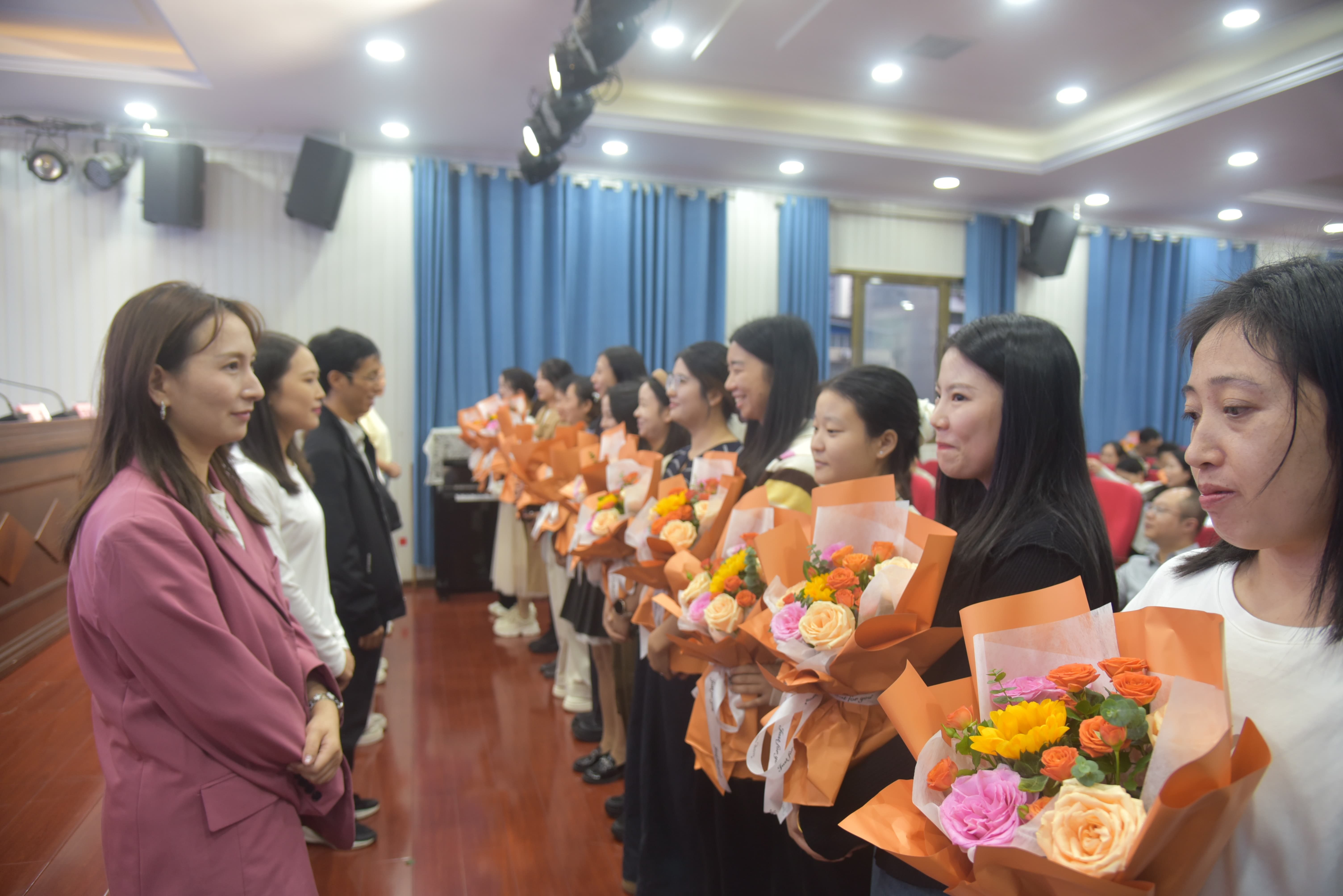 在充满敬意的拜师环节,青年教师们向各自的师傅行拜师礼、献鲜花。郑重的仪式饱含着对师傅的尊重与感激,象征着教育薪火的代代相传。