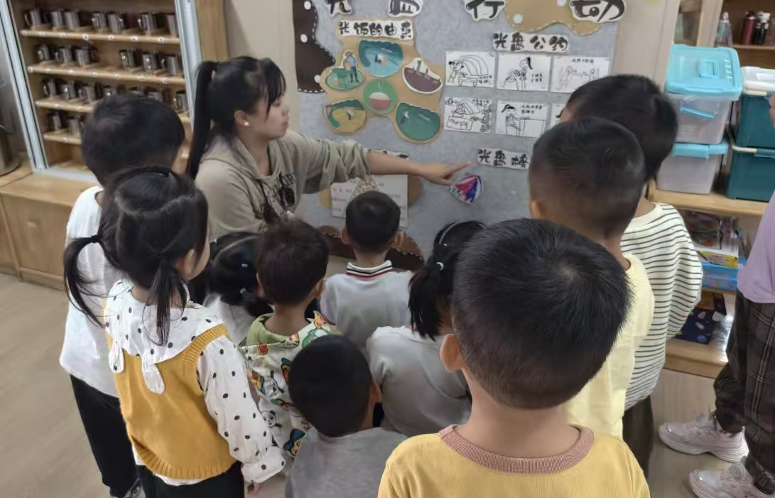 幼儿园致力于打造一个“会说话”的教育环境。在餐厅、食堂张贴“珍惜劳动成果、反对浪费粮食”等主题标语;各班级创设“光盘行动,从我做起”主题墙和“光盘小达人”光荣榜,配备星星印章与奖励贴纸,激发幼儿主动参与“光盘行动”。在“种植区”,准备绿豆、红豆、大蒜等种子及种植工具 ,让孩子们亲手播种、照料,在亲身体验中感悟生命成长与劳动价值。
