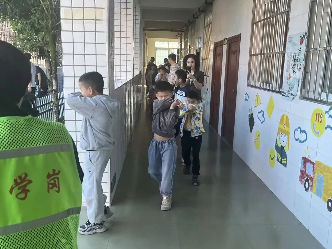 1.疏散引导:各班教师带领学生用湿纸巾捂鼻、弯腰撤离,陈海林、齐欣等引导员在楼梯口提醒路况,避免拥挤;宿舍楼出入口由廖广英、廖广芬负责引导,确保学生安全有序转移至操场集合点。