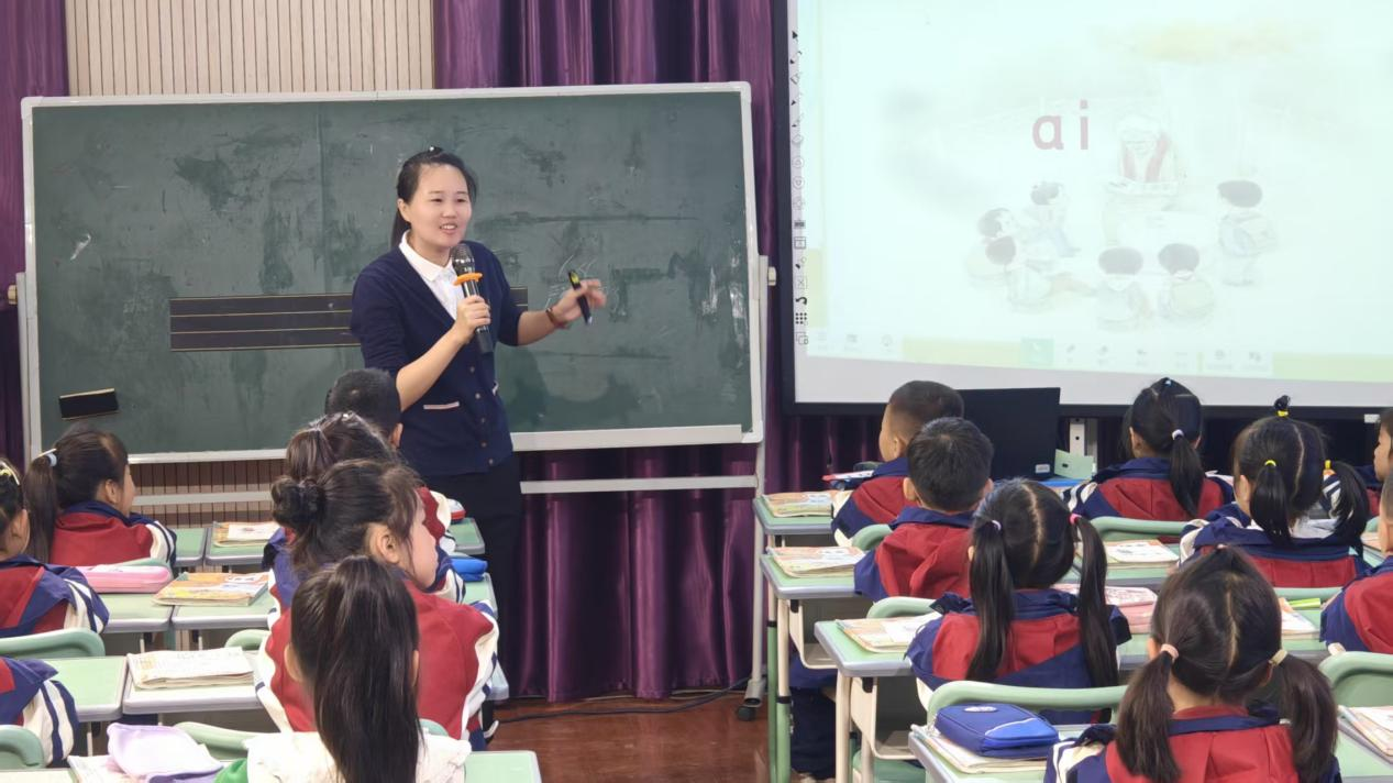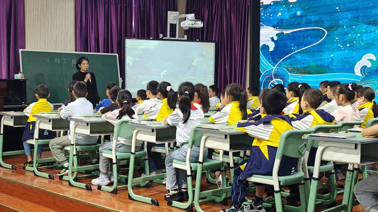 首先登场的是一年级的江萍老师。课堂上,孩子们跟着江老师读拼音、做手势,学得专注又投入,江老师也用清晰的引导、有趣的互动,把枯燥的拼音变成了好玩的游戏。同样来自一年级的陶焱琳老师的课堂节奏明快、设计精巧,无论是拼音书写的细节指导,还是孩子们的小组合作,都展现出扎实的教学基本功。这堂拼音课不仅让孩子们学会了知识,更培养了学习兴趣。四年级的李利平老师则用生动的讲述、巧妙的提问,带领孩子们读懂了精卫的执着,也感受到了神话故事的感染力。孩子们专注的眼神、积极地发言,就是对这堂课最好的肯定。