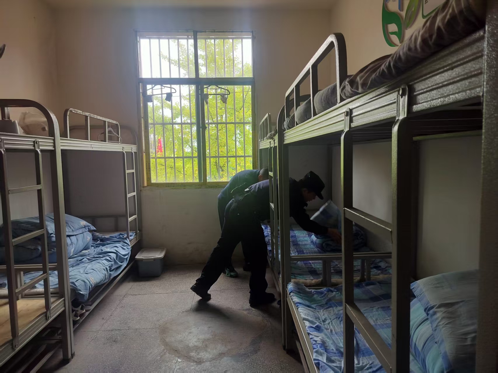 与此同时,学校主动联动草坝派出所,形成“校警协作”排查合力。民警与学校德育处工作人员、班主任组成联合检查组,深入各班级教室与学生寝室开展全面检查。检查组不仅细致查看教室储物柜、书桌抽屉,还对寝室床铺等隐蔽角落进行逐一排查,精准收缴违规携带的打火机、管制刀具等违禁物品。针对排查中发现的问题,工作人员当场登记并对相关学生进行安全教育,同时向全体学生重申校园安全规章制度,明确违禁物品禁止带入校园的要求。