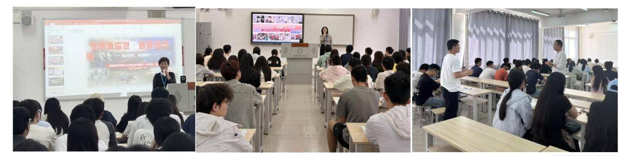 此外,党委副书记刘续梅结合健康中国战略讲解了专业价值,党委副书记李小荣围绕AI时代职业规划引导学生注重培养终身学习能力,校长助理蒲施宇讲述了阅兵中自主创新装备背后的青年科研团队的故事,均将国家需求作为重要导向,让学生明白专业学习从来不是孤立的,而是与国家发展紧密相连。