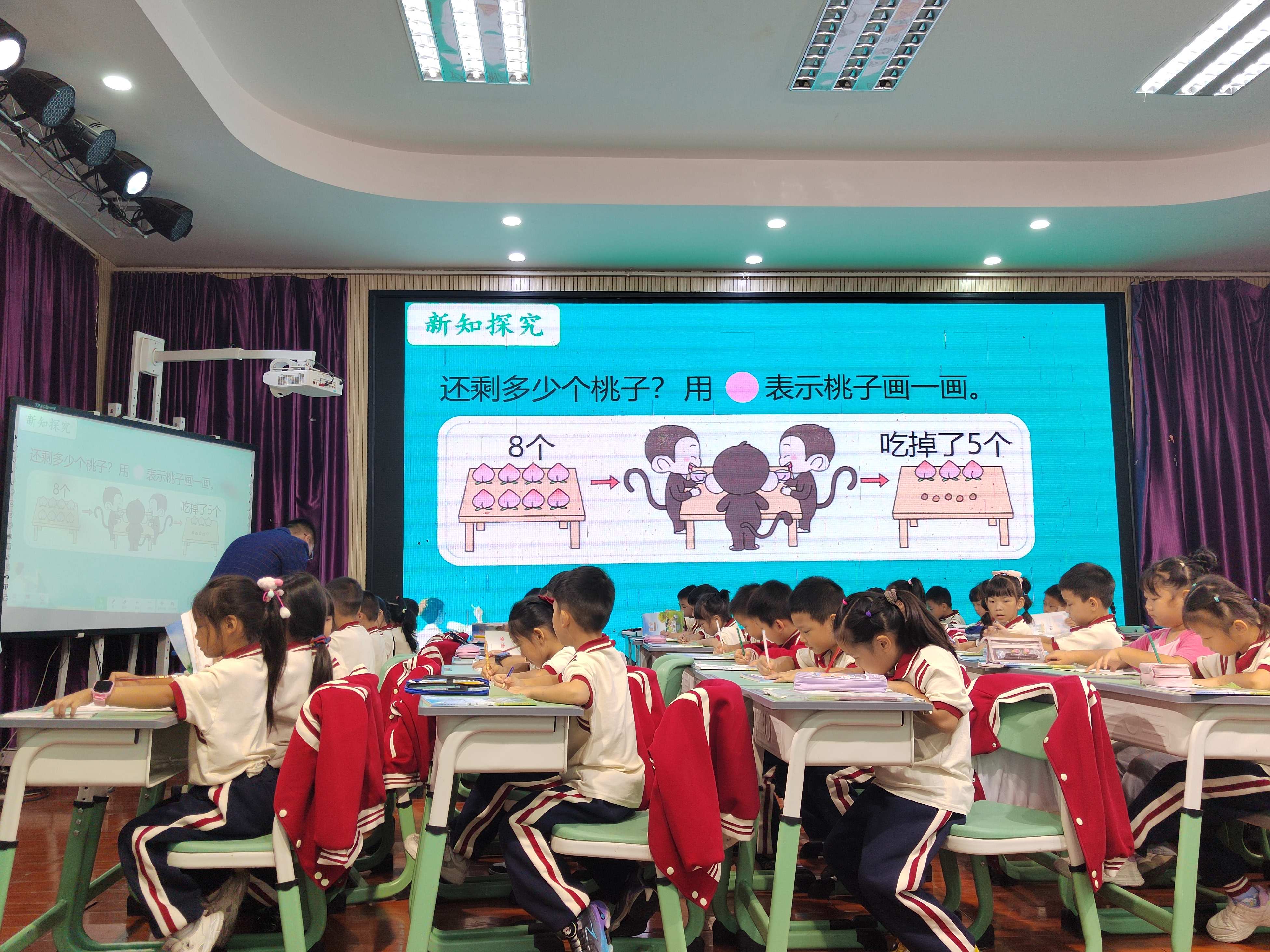 李刚老师针对一年级学生认知特点,以《认识减法》为主题,用“情景故事”搭建课堂,通过“吃桃子”“小老鼠偷饼干”等生活化场景,帮助学生建立“从总数中去掉一部分”的减法思维,课堂氛围活泼且富有童趣。