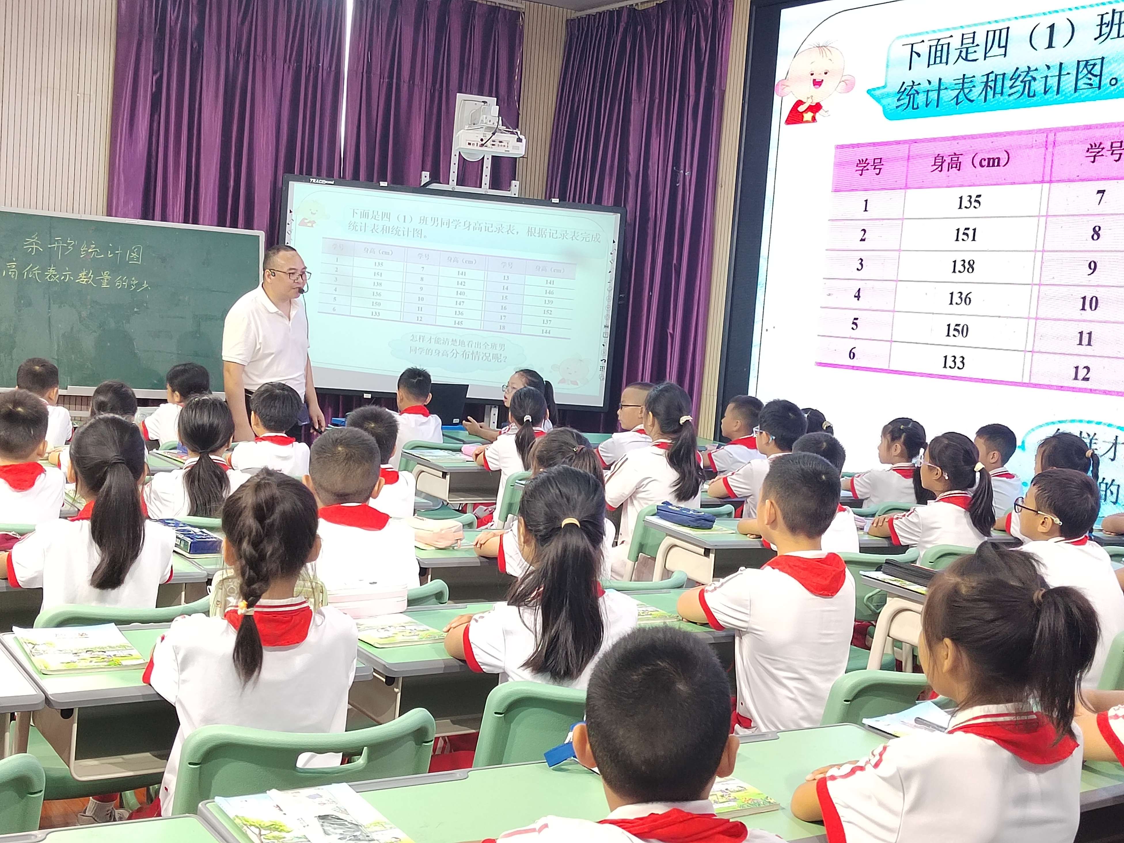 周晓涛老师面向四年级学生讲授《条形统计图》,借助真实数据,引导同学们绘制和分析条形统计图,培养了学生的数据分析能力,让学生在实践中掌握统计图的读取方法与数据分析意义,凸显数学与生活的紧密联系。