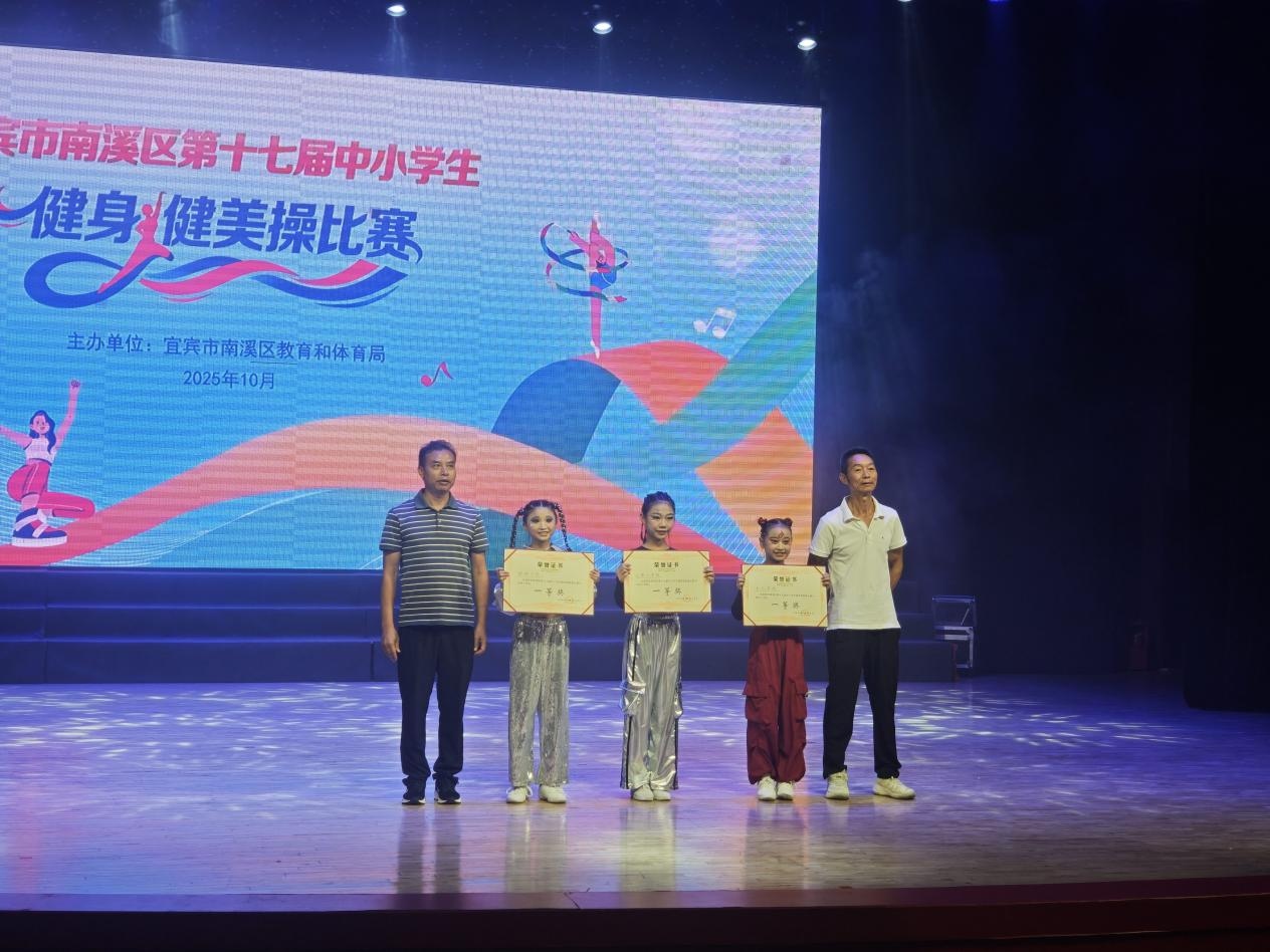 10月16日,宜宾市南溪区第十七届中小学生健身健美操比赛在南溪区演播大厅举行,仙源小学健美操队获小学组第一名。