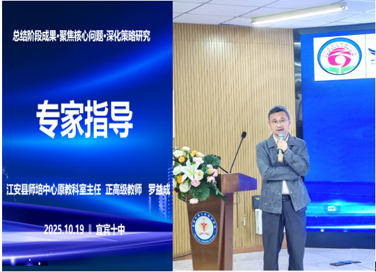 最后,正高级教师、课题指导专家罗益成对课题组阶段性工作进行专业点评,并就中期成果提炼工作进行指导,为课题组指明了突破方向,并就报告的撰写、论文的发表等老师们比较困惑的问题,进行了现场答疑。