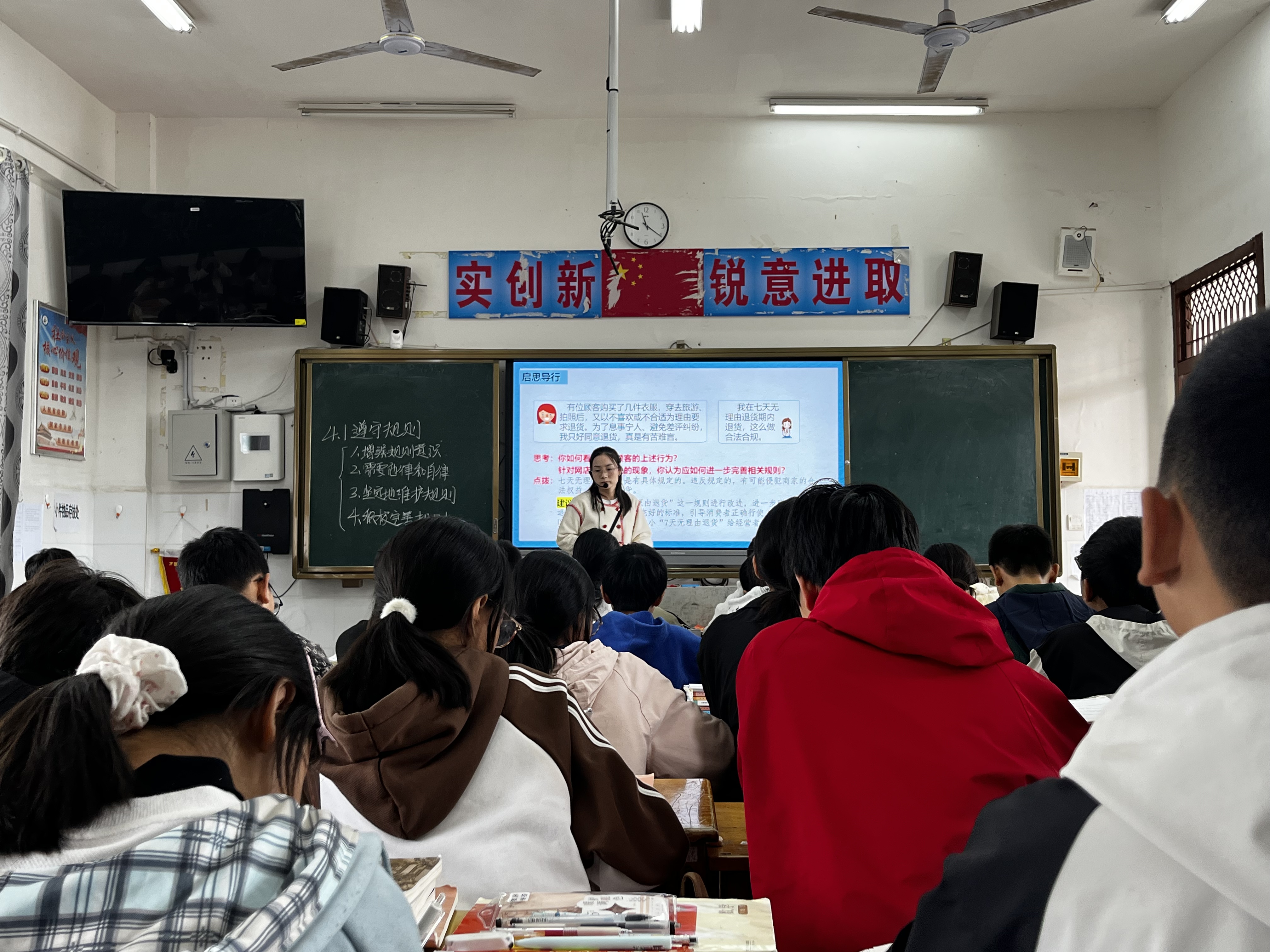 历史学科的两堂课展现了不同历史时期的文化与变革魅力。邓瑞老师的《百家争鸣》,以“诸子思想辩论会”的形式,让学生分别扮演孔子、孟子、韩非子等思想家,还原春秋战国时期思想碰撞的盛况,加深了对各家学派主张的理解;张新榆老师的《辛亥革命》则通过历史图片、纪录片片段与时间轴梳理,清晰呈现了辛亥革命的背景、过程与历史意义,引导学生理性思考历史事件的深远影响。
