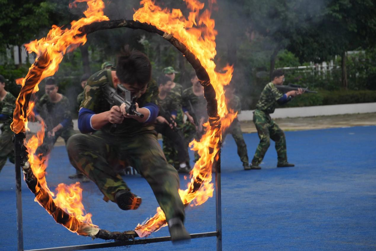 女子匕首操以其特有的队形和刚劲有力的动作,向我们展示女同学们的坚韧和力量,传递出女性永不退缩,勇往直前的精神风貌。