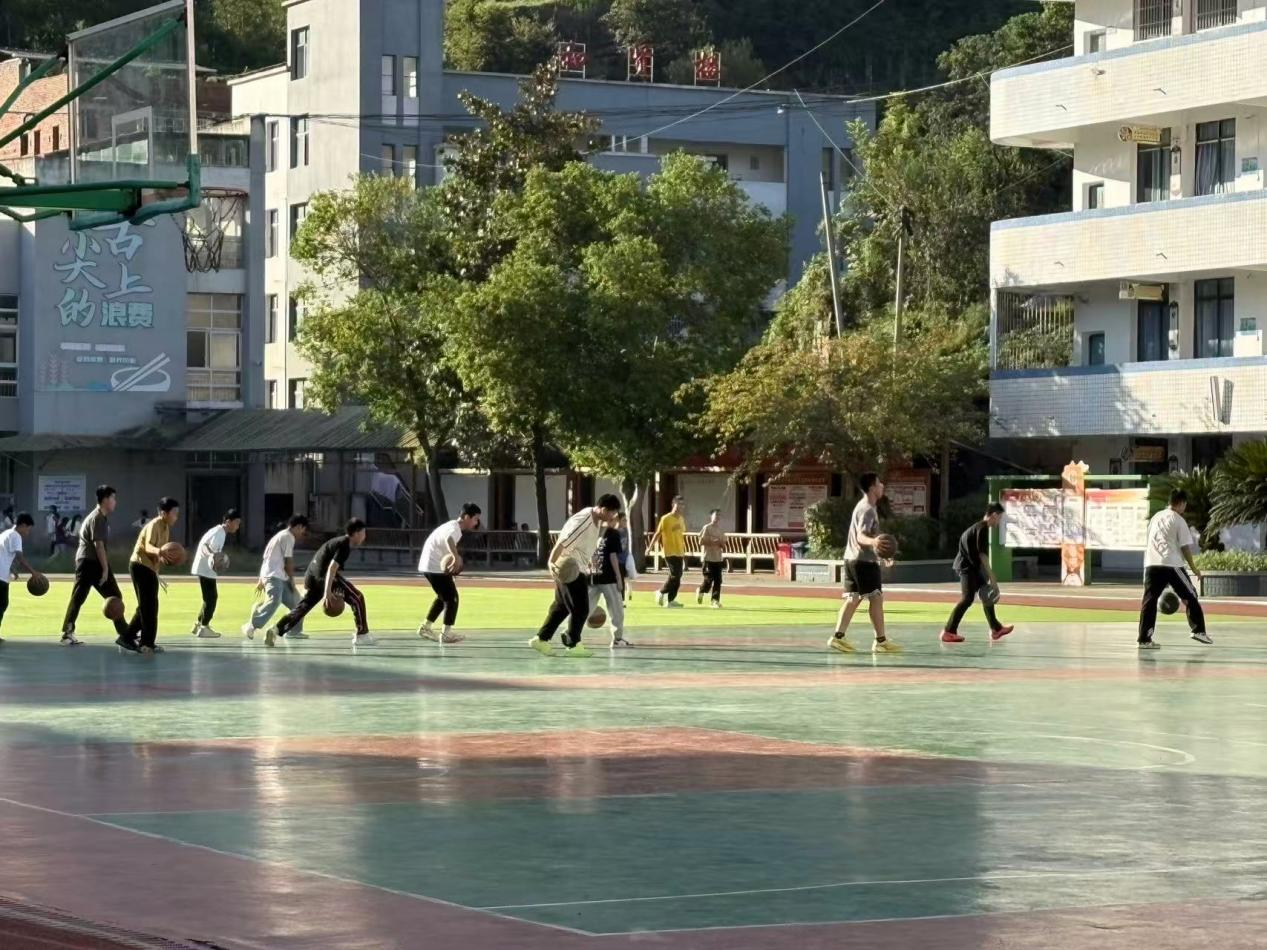 二、常态训练重实战,综合能力再提升。小组建立固定训练机制,每周一至周五下午第八节课开展系统训练。训练前严格热身以降低损伤风险,随后聚焦投篮技巧、防守能力等进行专项练习,最后通过分组比赛检验训练效果。同时,定期举办内部对抗赛、参与校际交流赛,让学生在实战中锤炼竞技水平,培养团队协作与应变能力。