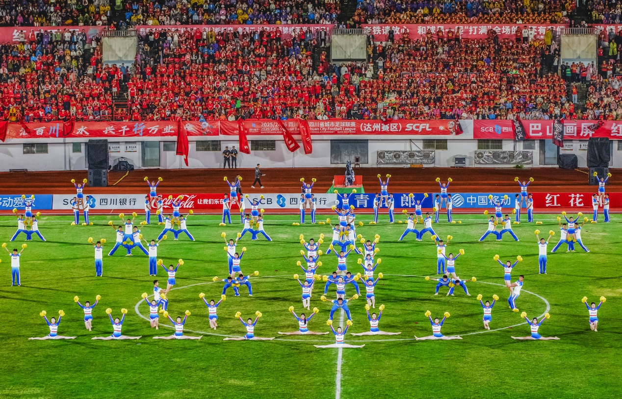 川超联赛达州主场赛区的赛场之上,一股青春热浪强势袭来 —— 宣汉中学啦啦操队的中场暖场表演,凭借炸裂表现力成为全场焦点,用活力点燃了整个赛场!