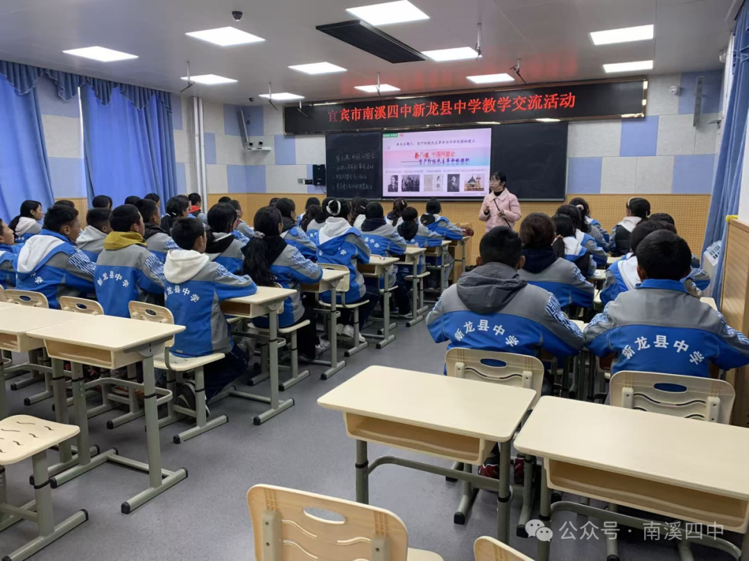 10月21日,南溪四中唐书鹃老师在新龙中学八年级7班成功执教《中国同盟会》历史公开课,以优质课堂实践深化两校教学交流。