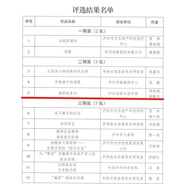 作为泸州市教育体育系统唯一获得等次奖并将推送到省上参与复评的作品,《渡桥传星火》充分展现了泸州老窖天府中学以红色文化铸魂育人的风采。