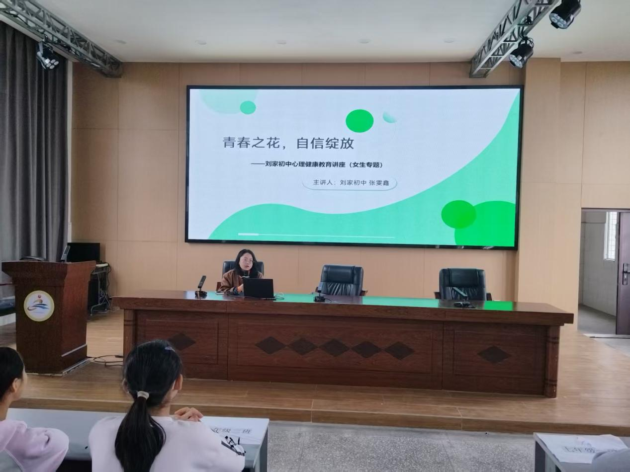 为增强女生的自我保护意识,引导她们建立健康、安全的人际交往观念,10月22日上午,刘家初中在阶梯教室为全体女生举办了一场题为“青春之花,自信绽放”的专场讲座。本次讲座由心理健康专职教师张雯鑫老师主讲。