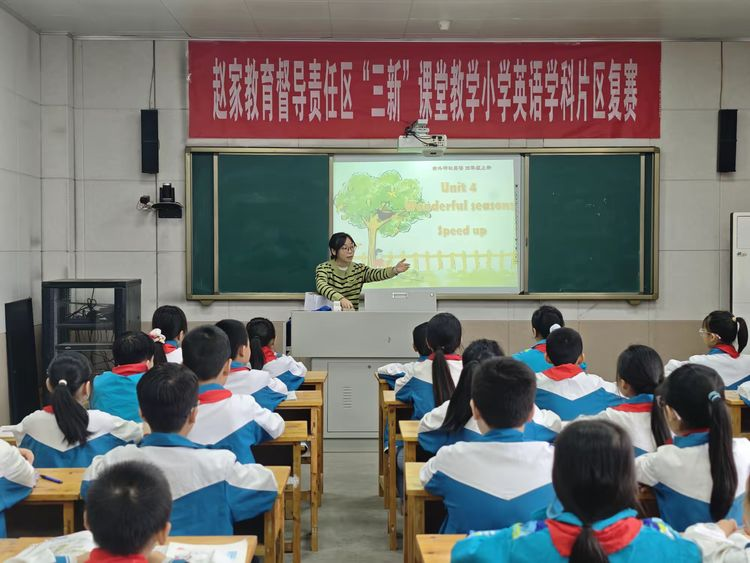 为深化课堂教学改革,锤炼教师专业能力,10月20日,赵家教育督导责任区“三新”课堂教学赛课片区复赛(小学英语)在赵家学校成功举办。本次活动在组长杜泽雄、副组长吴小荣、邓兵、张子海等的组织领导与片区督学的主持下,活动汇聚了片区六校的教学骨干,以“同课异构”的形式展开深度交流,旨在共同探索提升课堂教学有效性的实践路径。