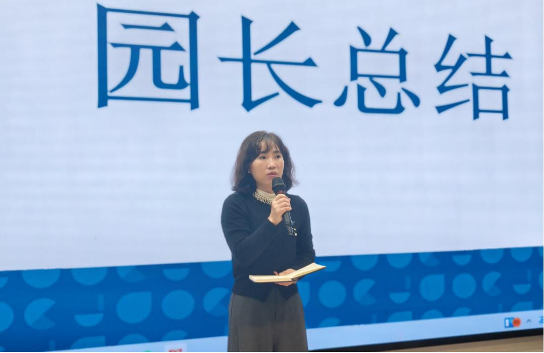 园长刘利对本次活动进行总结。她肯定了青蓝工程的重要价值,要求师傅们履行职责,徒弟们保持虚心好学的态度,并希望全体师徒以结对为起点,共同探索幼教新思路、新方法,为幼儿园的高质量发展贡献力量。