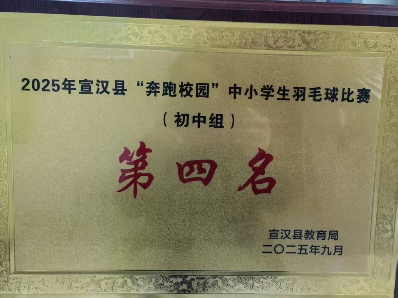 在2025年宣汉县“奔跑校园”中小学生羽毛球比赛的赛场上,华景中学羽毛球队的队员们用汗水与坚持,为学校赢得了一枚沉甸甸的“勋章”——初中组第四名。这枚勋章,不仅是对成绩的肯定,更是对奋斗者精神的最佳诠释。