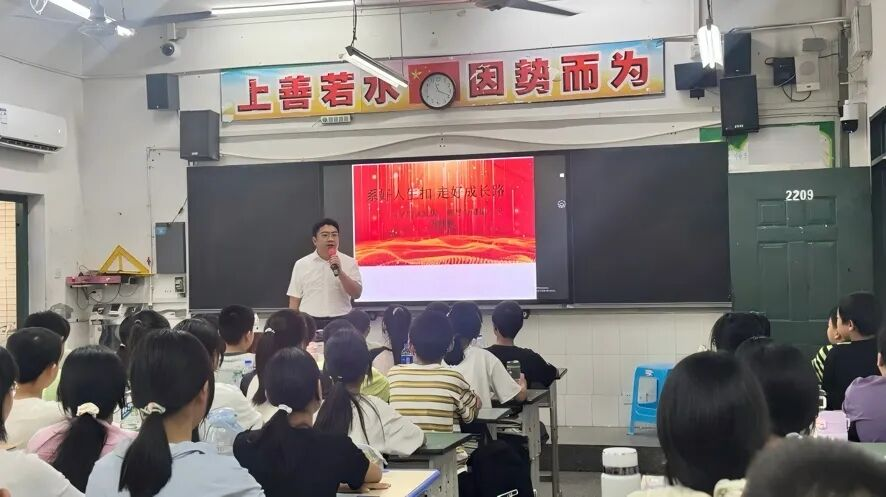 党委副书记、校长何纬枫走进初一教室,以“爱国、理想与健康”为主题,强调爱国是方向,理想是动力,健康是基石;希望初一学生能系好人生的第一粒扣子,脚踏实地,砥砺前行,成长为不负时代、不负家国的栋梁之才!
