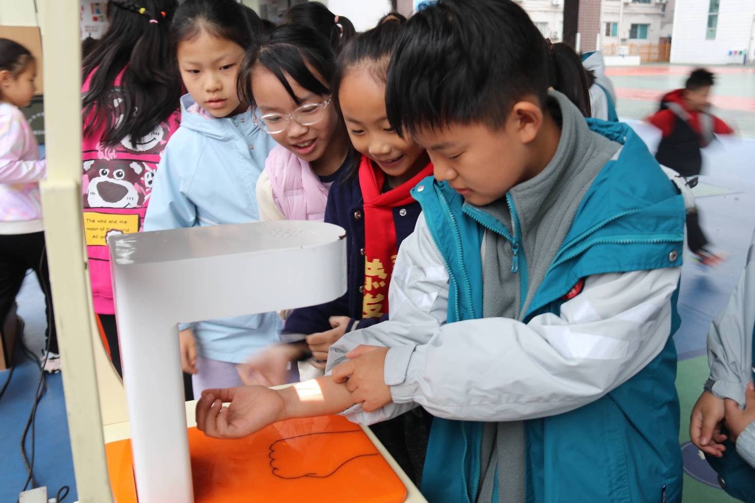 除了精彩的现场实验,科普大篷车带来的互动展区更是让孩子们挪不开脚。这里就像一座“移动科技馆”,力学、光学、声学等多个领域的互动展品整齐排列:能体验杠杆原理的“平衡小能手”、能观察光的折射的“奇妙万花筒”、能感受声音振动的“传声筒”……孩子们或围着展品观察琢磨,或亲手操作体验,在触摸与探究中感受科学魅力 。科普志愿者穿梭其间,用通俗易懂的语言解答着一个个“为什么”,将科学知识转化为孩子们听得懂、记得住的趣味讲解。
