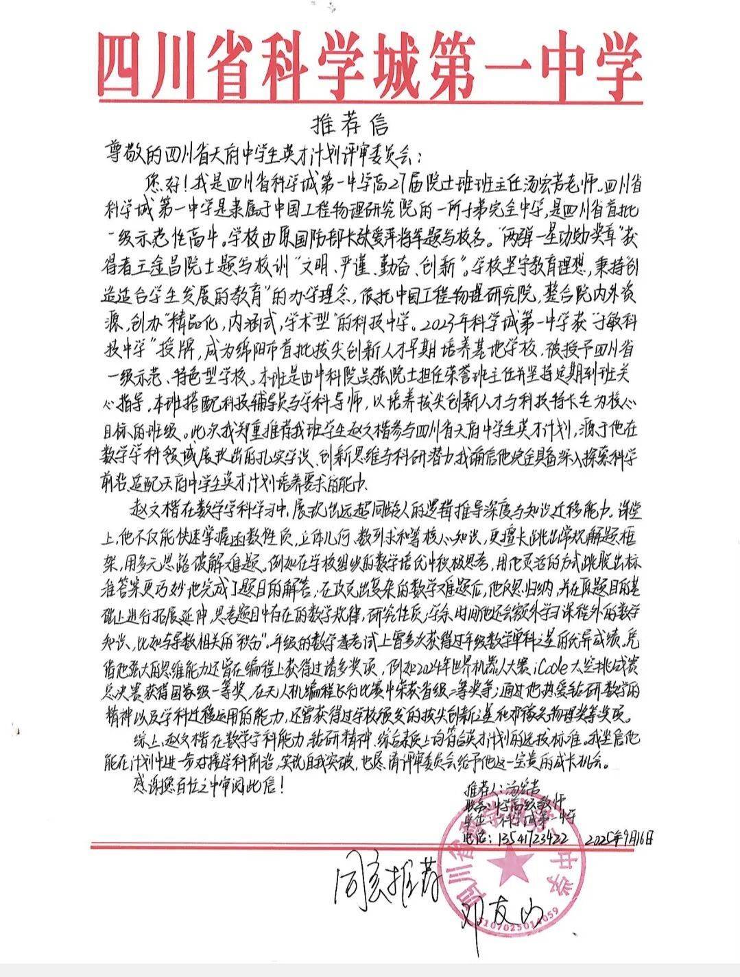 此次成绩的取得,既是四川省科学城一中学子勤奋求知、锐意进取的生动写照,也是学校扎实推进科技创新教育的必然成果。科学城一中始终以培养具有科学素养、创新精神和家国情怀的时代新人为使命,不断深化与高校、科研院所的合作机制,持续拓展学生成长平台。未来,学校将继续为每一位有志于科技创新的学子铺路搭桥,助力他们在探索未知、勇攀高峰的征程中绽放光彩,为国家和区域发展贡献青春力量!