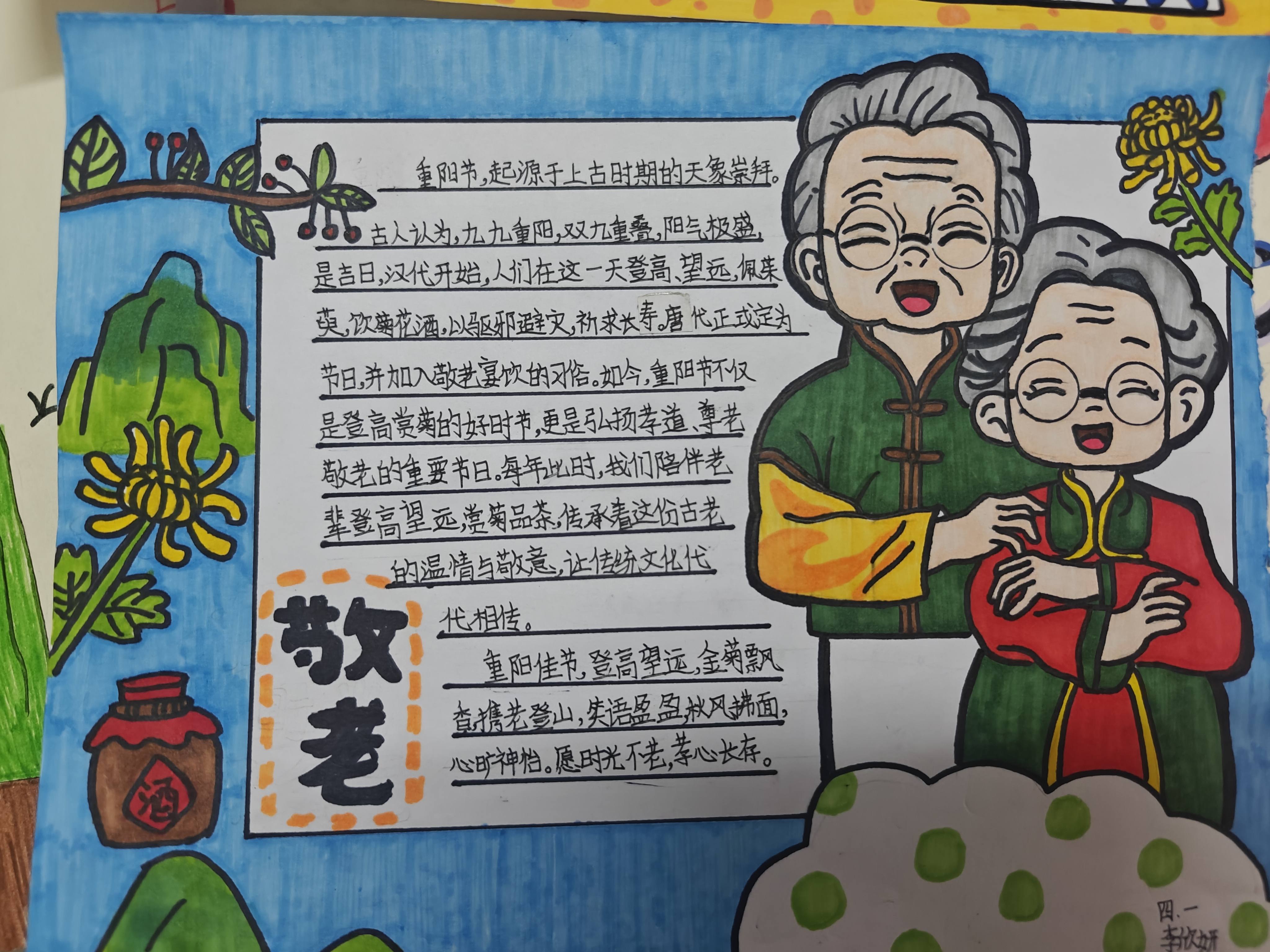 活动中,各中队以生动的故事、图片等形式讲解重阳节的由来与习俗。随后各班启动“孝心行动”,学生们积极参与其中:有的为爷爷奶奶捶背揉肩、端茶递水,用实际行动分担家务;有的发挥创意,制作重阳节主题手抄报,以“敬老名言”“孝亲故事”为内容,勾勒对长辈的祝福;还有的巧手缝制香囊、编织挂饰,将心意融入一针一线之中。课后,学生们通过照片、视频分享实践过程,班级群里满是老人欣慰的笑容与学生真诚地感悟。