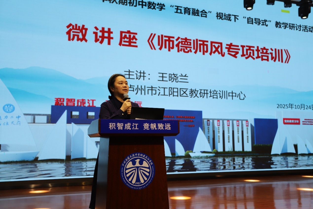 近日,江阳区2025年秋期初中数学“五育融合”视域下“自导式”教学研讨活动在泸州老窖天府中学附属长江学校举行。全区初中数学教师齐聚一堂,共研共进,开启一场精彩的教学研讨之旅。