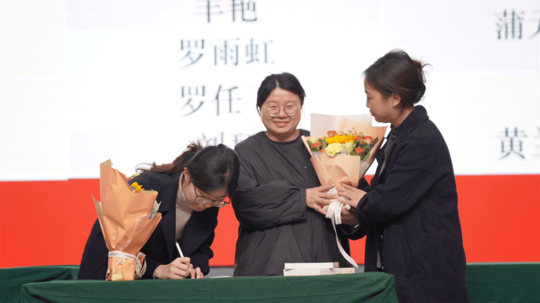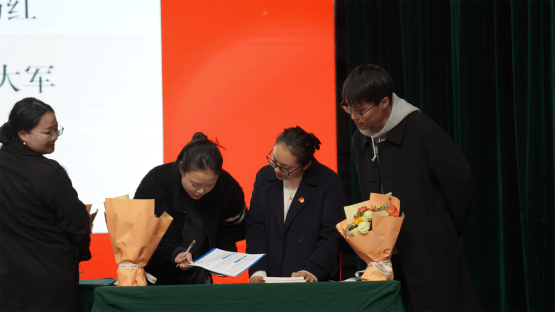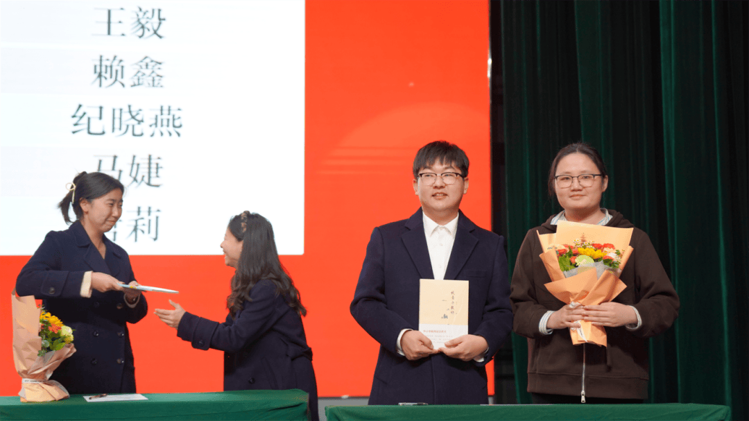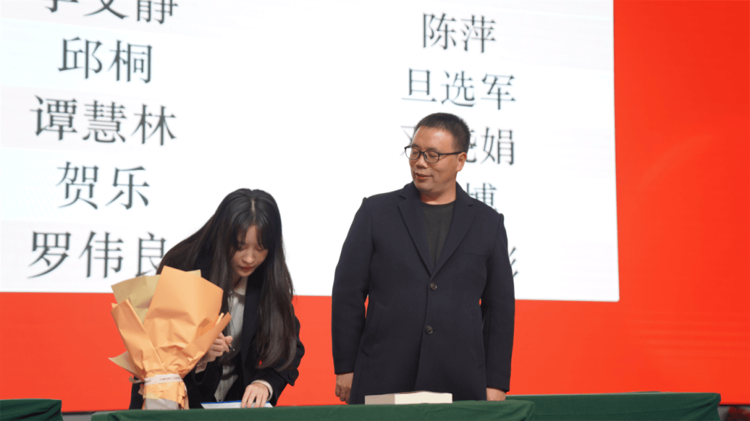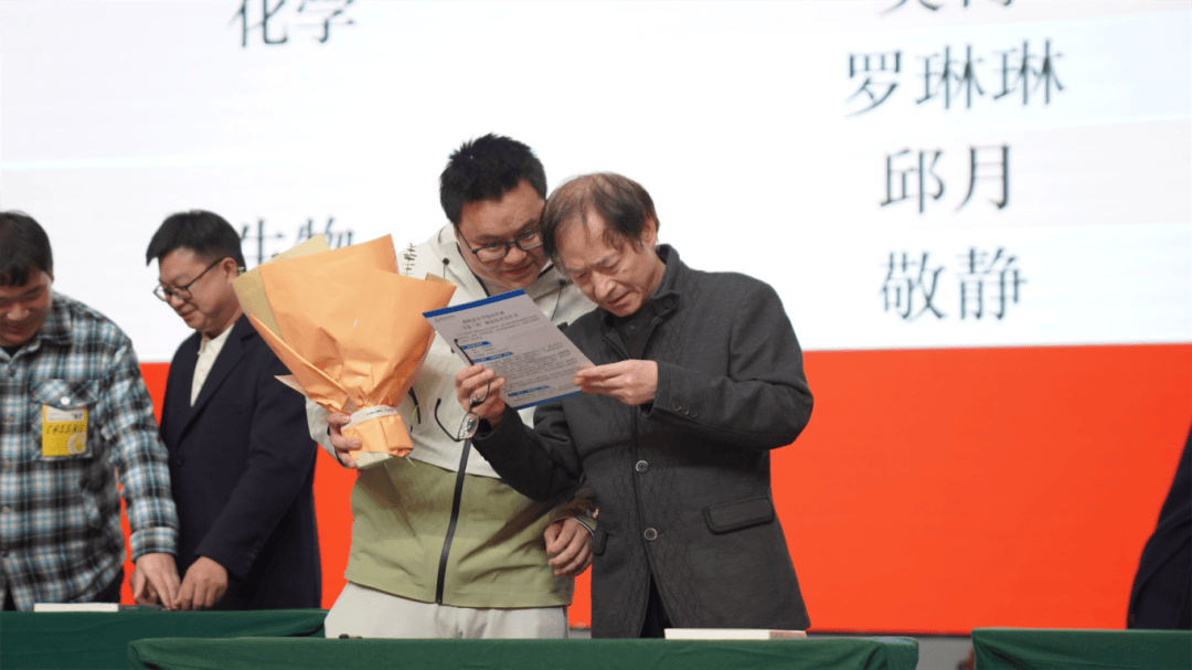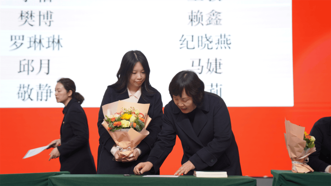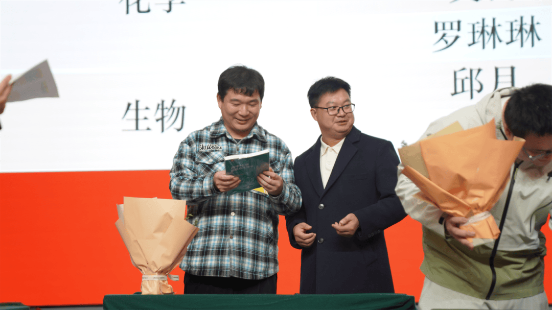 全体导师与学徒教师依次登台,郑重签下《师徒结对承诺书》。聘书为证,承诺为凭;鲜花敬师,书籍传情。学徒们为导师献上鲜花,以表对师道的尊崇与求学的诚心;导师们为学徒赠书,传递从教经验,寄托殷切期望。
