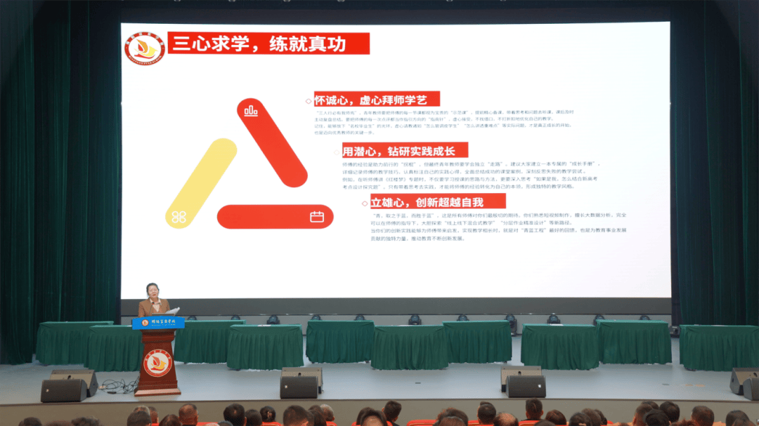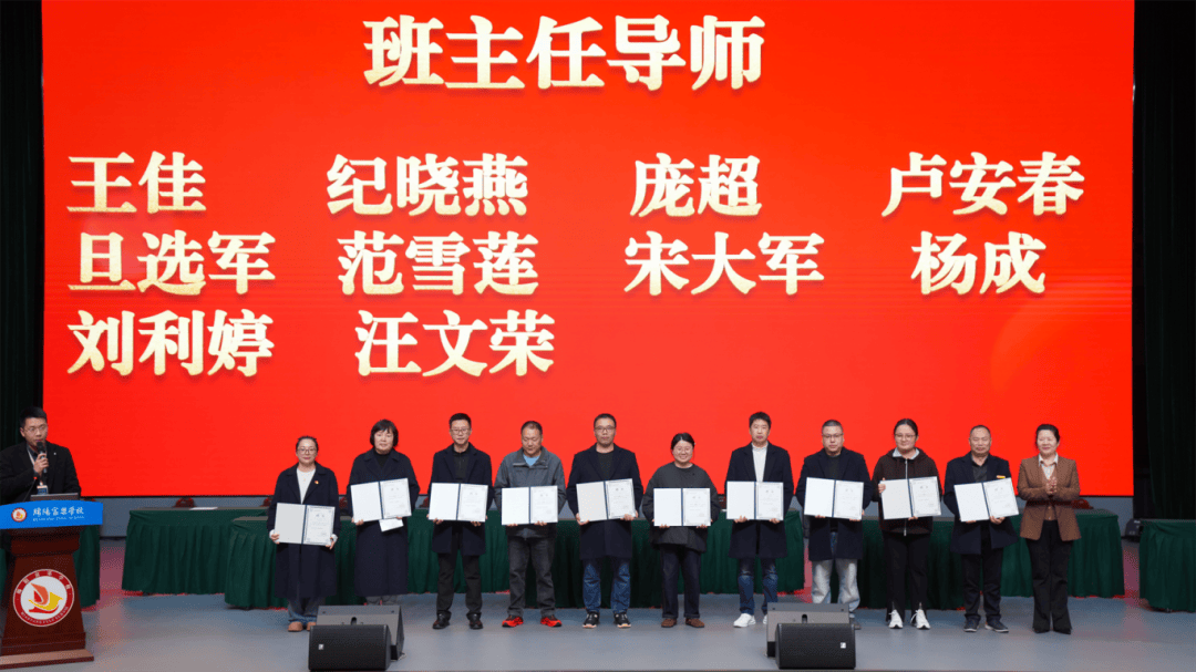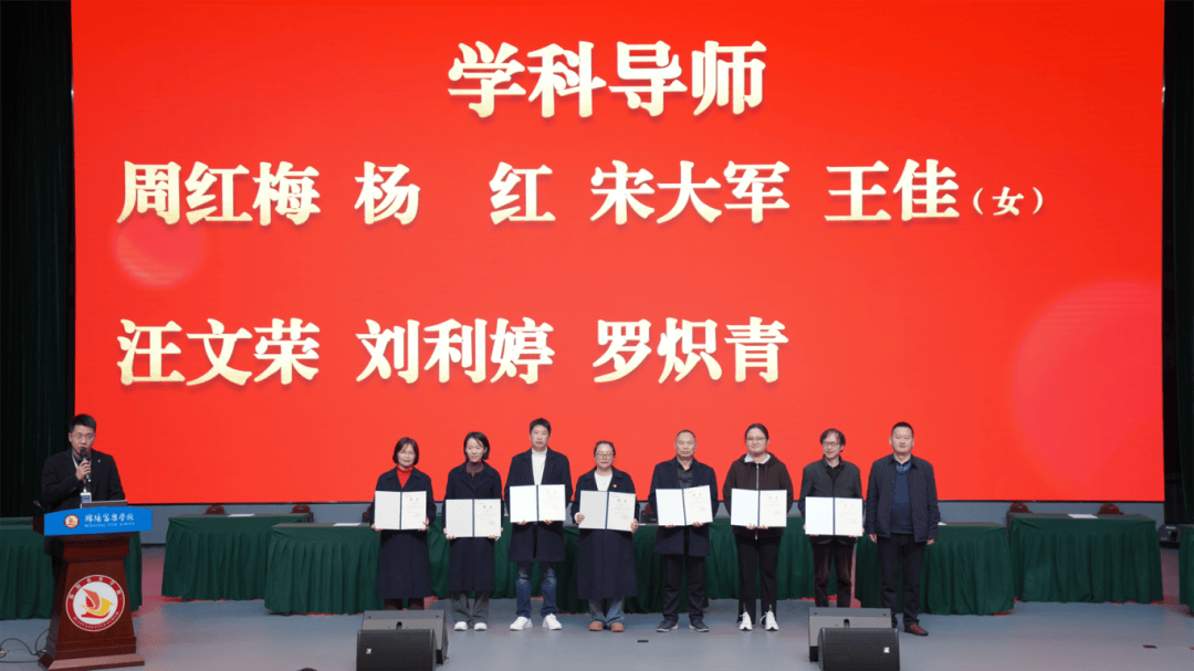学校领导依次为全体学科导师和班主任导师颁发聘书,导师们有序登台接过证书。这不仅是一份荣誉,更是一份沉甸甸的教育使命——肩负起传承教学经验、助力青年教师蜕变的重任,为高中部教育教学高质量的持续提升注入强大力量。