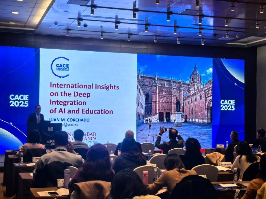 活动集结了众多国内外教育界重量级嘉宾,教育部基础教育司副司长朱东斌、中国教育国际交流协会副秘书长王鲁新等出席开幕致辞;北京师范大学教育技术学院副院长卢宇作 “人工智能驱动的教育变革与创新” 主旨报告,西班牙萨拉曼卡大学校长胡安・曼努埃尔・科尔查多带来 “人工智能与教育深度融合的国际洞察”;清华大学计算机系教授马昱春就 “AI赋能教学赋了什么?” 开展主旨报告,还有多所知名中学校长及教育机构专家参与专题报告,全方位探讨AI赋能教育的实践路径与未来走向。