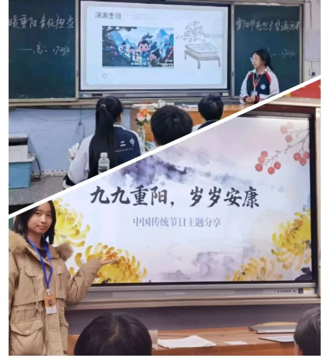 在校内,学校开展了“知重阳”主题团课。各班团支书精心准备,系统讲解重阳节的历史渊源与传统习俗,着重阐释“敬老孝亲”在当代的价值,使尊老敬老的观念深入学生内心。高二10班团支书刘欣悦在主持团课后表示:“准备过程让我更深刻地理解,重阳不仅是文化传承,更提醒我们将对长辈的感恩落实到日常行动中。”