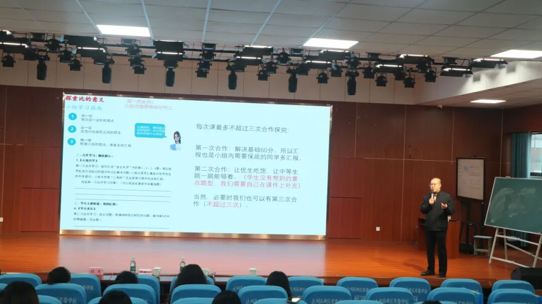 在专家讲座环节,达州嘉祥外国语学校杨杨老师作《导学让学习发生》专题分享。他结合理论与实践,系统解析如何在小学数学教学中落实核心素养,强调通过有效导学激发学生学习兴趣,引导其主动探究,培养自主思考与创新能力。