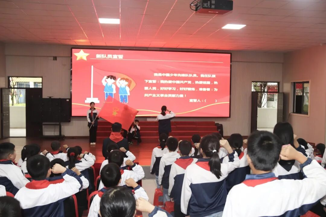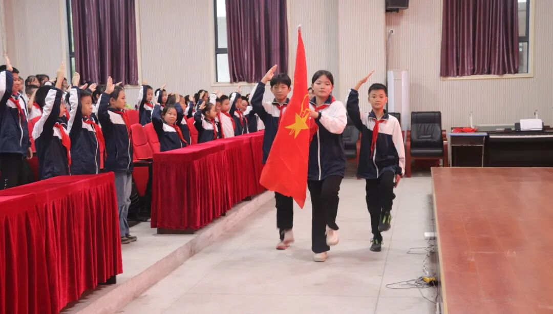 “我是中国少年先锋队队员。我在队旗下宣誓:我热爱中国共产党,热爱祖国,热爱人民,好好学习,好好锻炼,准备着:为共产主义事业贡献力量!”伴随着响亮而坚定的入队誓言,新队员们高高举起右手,将承诺刻进心里。从这一刻起,他们有了崭新的身份——光荣的中国少年先锋队队员!