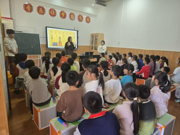 2025年10月30日,南溪区前进小学邀请宜职院资深音乐教师亓炜伟老师到校开展了一堂以经典歌曲《苏珊娜》为主线的奥尔夫乐器律动示范课。全体音乐教师到场观摩听课,全程参与学习。