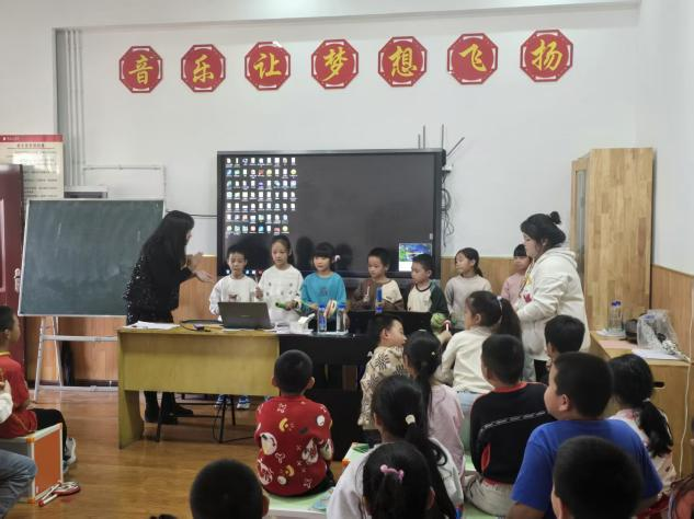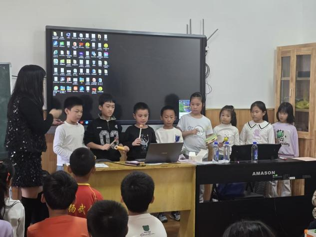 随后的课堂以学生自主实践为重点,亓老师组织学生进行小组讨论,各组成员在教师引导下创编节奏型、设计表演形式,并合作完成一段以《苏珊娜》为旋律基础的器乐合奏。在分组上台展示环节,各小组依次呈现了富有创意与协作成果的表演,充分展现了奥尔夫教学法“在合作中学习,在创造中成长”的教育理念。