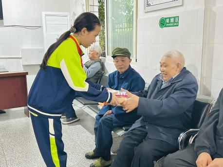 抵达敬老院后,活动在温馨的氛围中逐步展开:老师带领同学们,将提前准备好的慰问品逐一送到老人们手中。“爷爷您好,这是给您的重阳节礼物!”“奶奶您拿好,祝您身体健康!” 稚嫩的问候与贴心的物品,让老人们脸上瞬间绽放出欣慰的笑容。