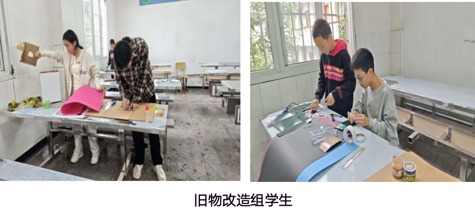 破茧焕新·旧物智能改造大赛: 鼓励学生将家中闲置或废旧物品,通过巧思与动手能力,结合生态环保理念,进行功能性、艺术性的创新改造。一件件旧衣物、空瓶罐、废纸箱在同学们手中“焕发新生”,变为实用的笔筒、创意的装饰灯、自动浇花器等,充分展现了同学们的环保理念与科技素养。